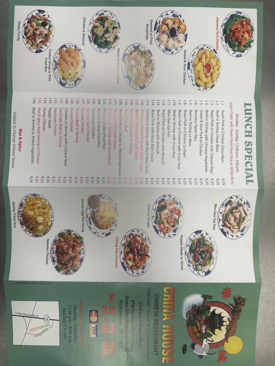China House Restaurant - Rocky Mount Menu